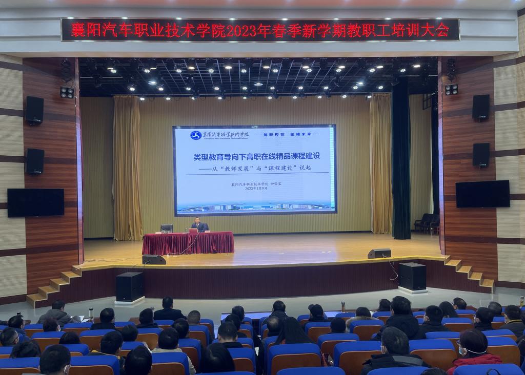 本次培训共5个专题,分别邀请山东商业职业技术学院原校长钱乃余、襄阳汽车职业技术学院党委书记余荣宝、襄阳职业技术学院教授马仁海、襄阳职业技术学院语文教研室主任张琪、襄阳汽车职业技术学院评建办主任刘晓莉等5位校内外专家主讲。培训结合具体案例,从高水平专业群建设逻辑及路径分析、类型教育导向下高职在线精品课程建设、国家课程思政项目建设思路及路径解析、基于在线精品课程建设的教师教学能力提升路径、学校“双高”建设总结与计划等方面进行深入浅出的讲解。本次培训对学校教师开展精品在线开放课程建设、“课程思政”教学改革、“双高”建设发展等具有切实的指导意义。