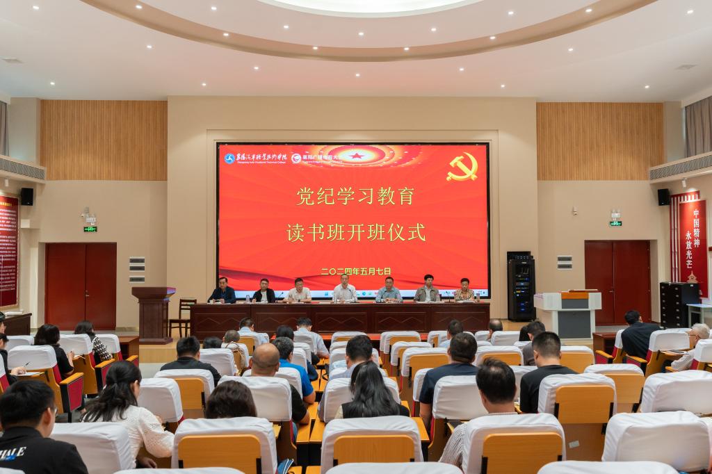 5月7日下午,我校举行党纪学习教育专题读书班开班仪式暨党课专题辅导。校党委书记余荣宝作开班动员讲话和专题辅导。班子成员及全体中层干部参加会议。开班仪式由党委副书记丁波主持。