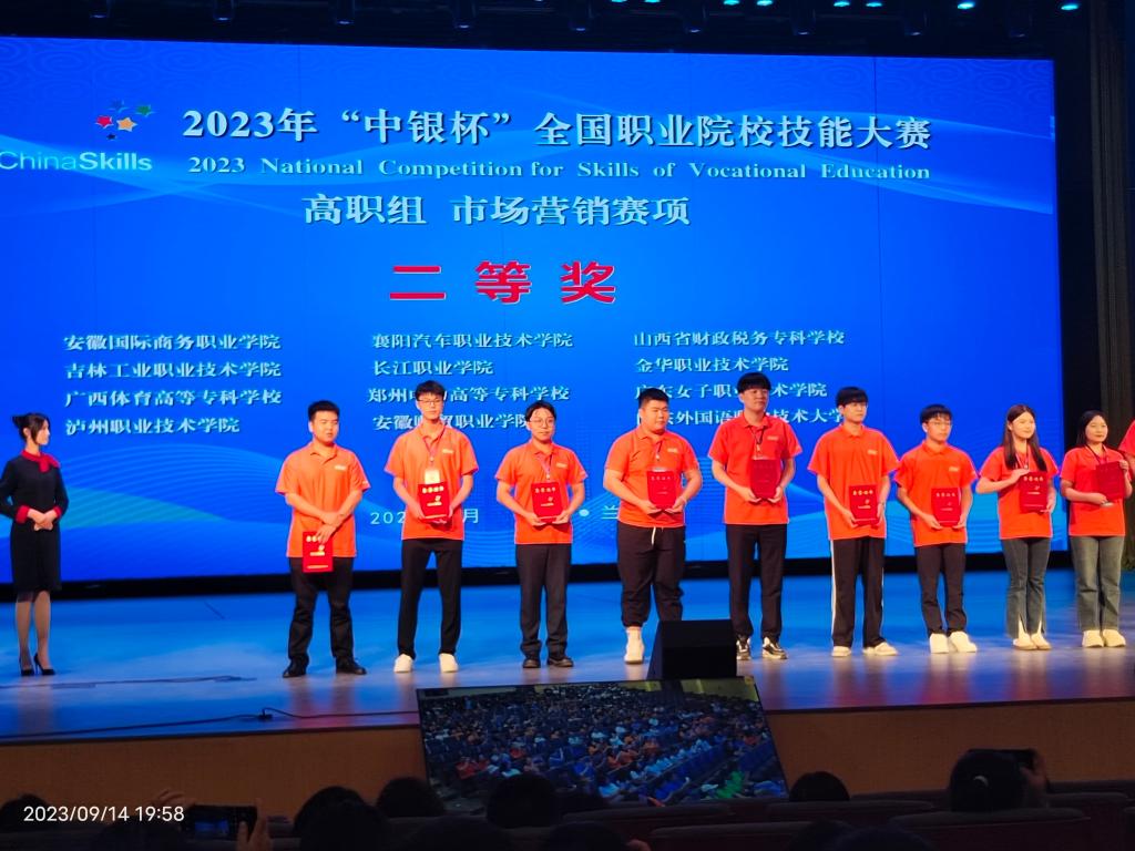9月14日,2023年“中银杯”全国职业院校技能大赛(高职组)市场营销赛项比赛在兰州环境资源职业技术大学落下帷幕。全国62所高职院校248名选手参加了本次大赛。学校副校长包科杰带领的汽车营销专业代表队,经过13、14日两天紧张角逐,最终获得二等奖的好成绩,实现了我校全国职业院校技能大赛国家级奖项零的突破。