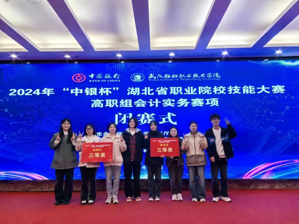 3月17日,2024年“中银杯”湖北省职业院校技能大赛高职组会计实务赛项在武汉圆满闭赛。本次大赛全省有43所高职院校的421名选手参赛,现代管理学院大数据与财务管理专业代表队在众多强手中脱颖而出。朱云波、张洪宁、冯琴、刘偲怡组成的学生推荐队和张雪、刘诗依、经桦霞、荣钰彤组成的学生抽测队以及教师代表刘辉分获省三等奖。