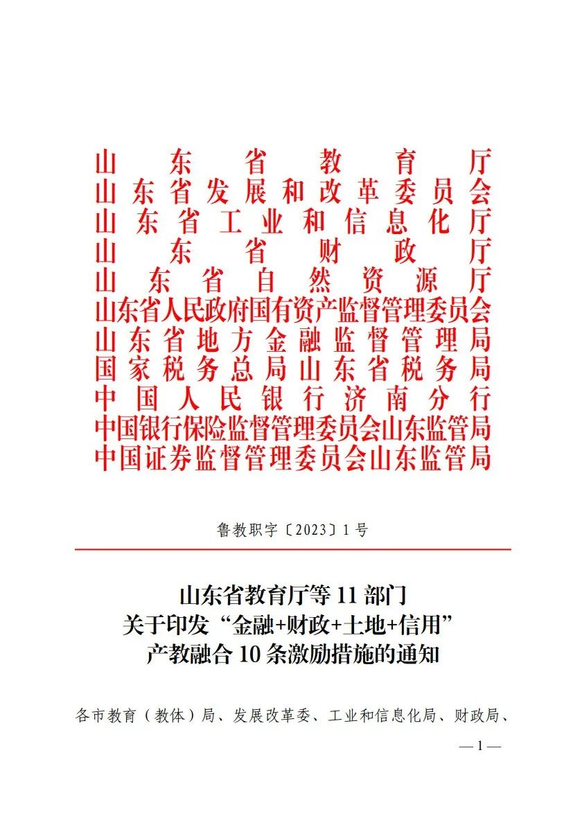 附件:《山东省教育厅等11部门关于印发“金融+财政+土地+信用”产教融合10条激励措施的通知》