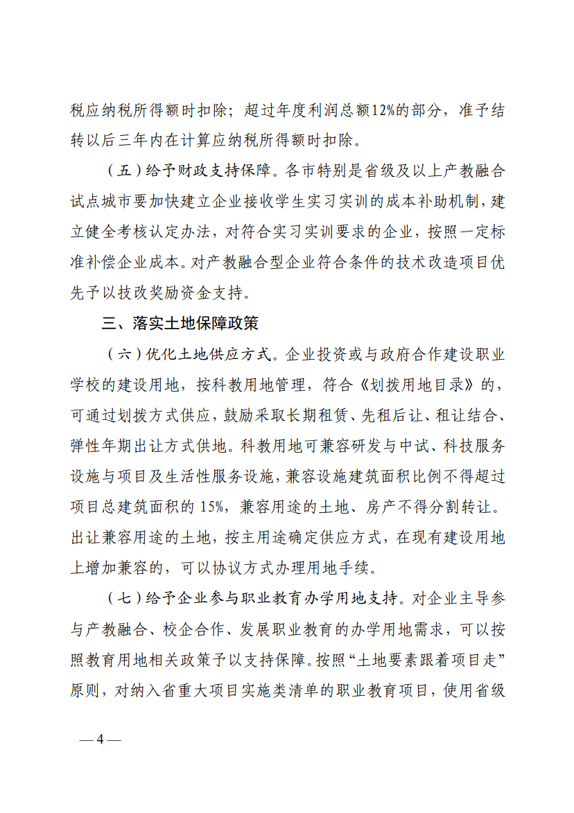中共中央办公厅、国务院办公厅印发的《关于深化现代职业教育体系建设改革的意见》明确提出鼓励地方“制定支持职业教育的金融、财政、土地、信用、就业和收入分配等激励政策的具体举措”。